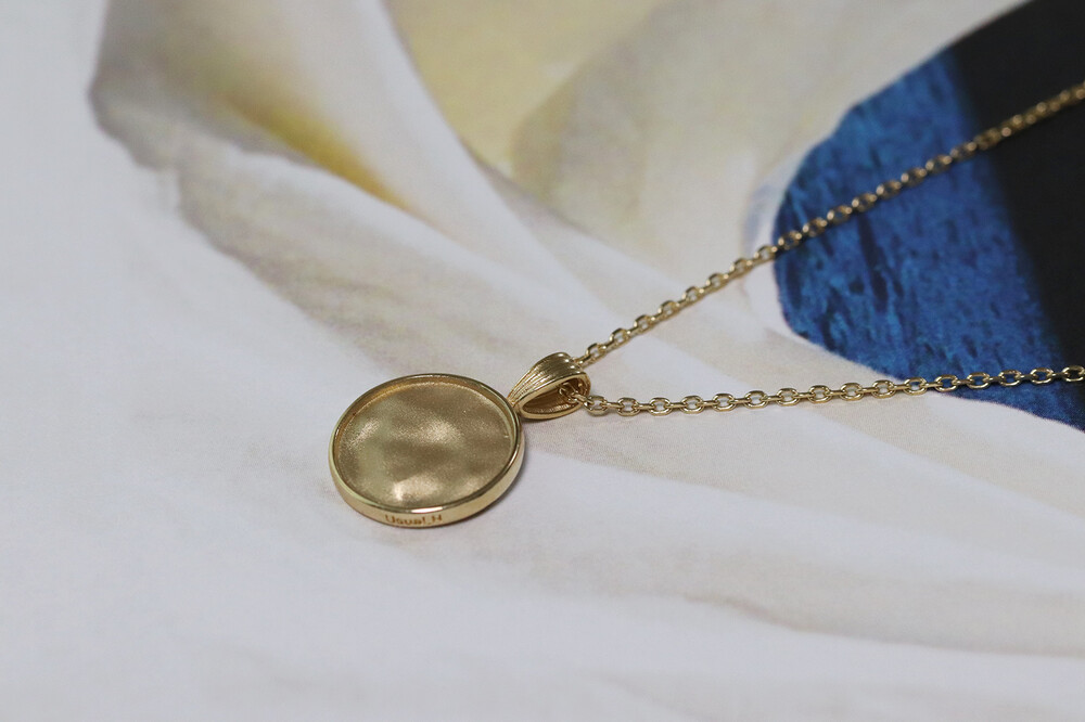 펜던트 표면은 약간씩 굴곡진 형태감이 느껴지면서, 표면은 무광처리를 하여 질감 표현이 더 돋보일 수 있도록 하였습니다.