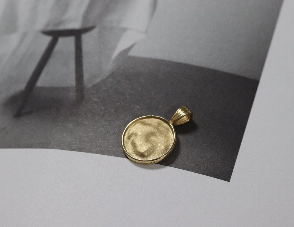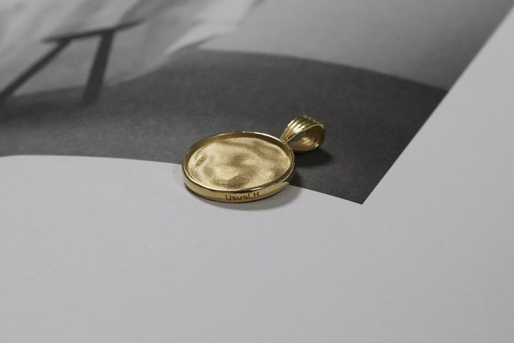 펜던트 표면은 약간씩 굴곡진 형태감이 느껴지면서, 표면은 무광처리를 하여 질감 표현이 더 돋보일 수 있도록 하였습니다.