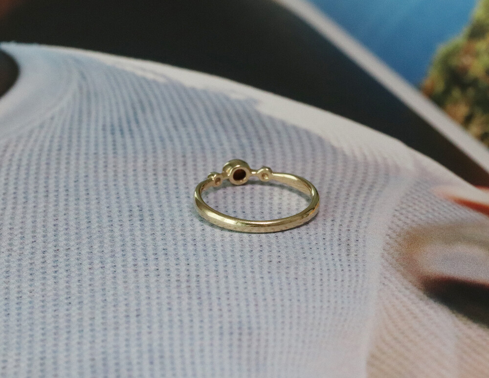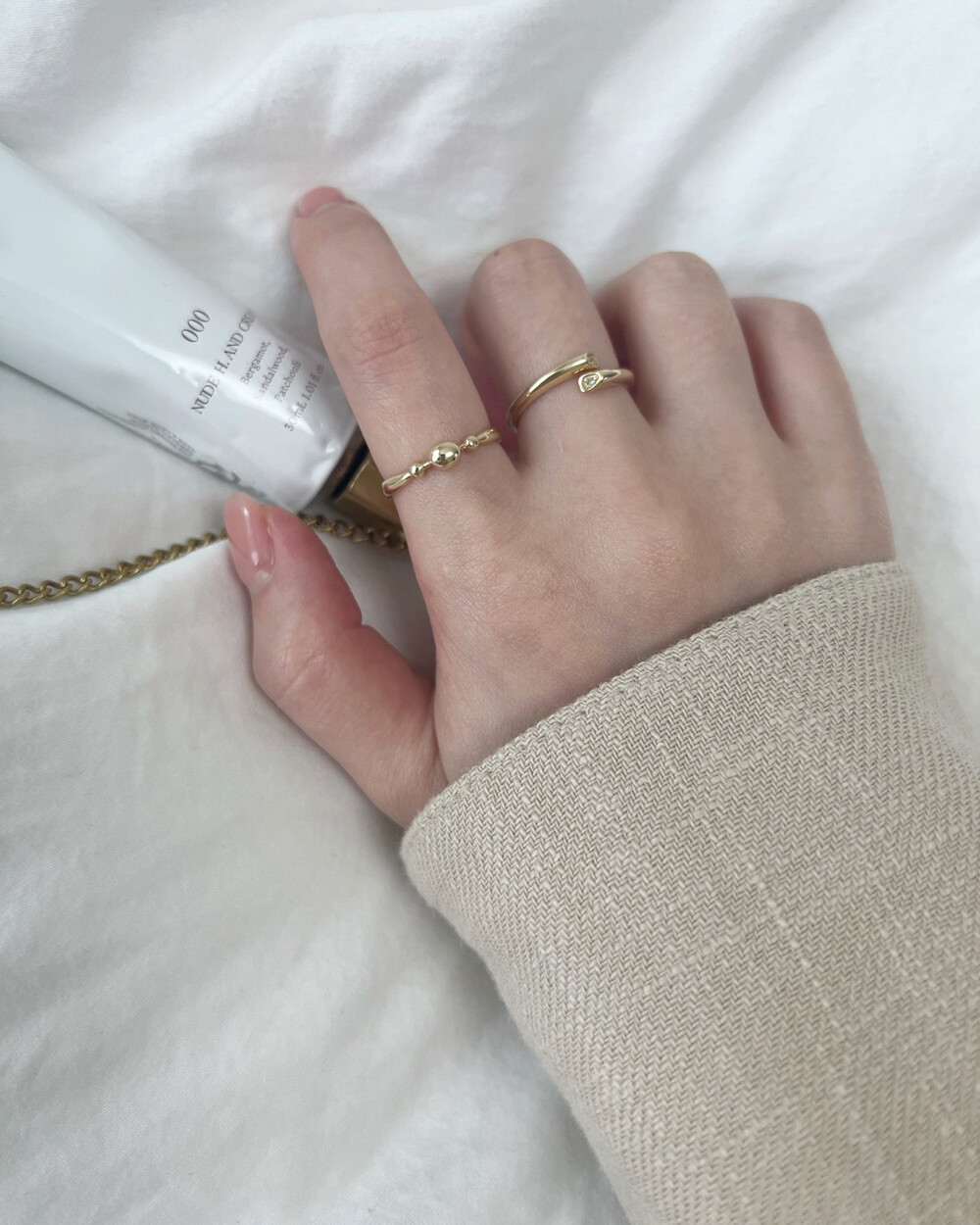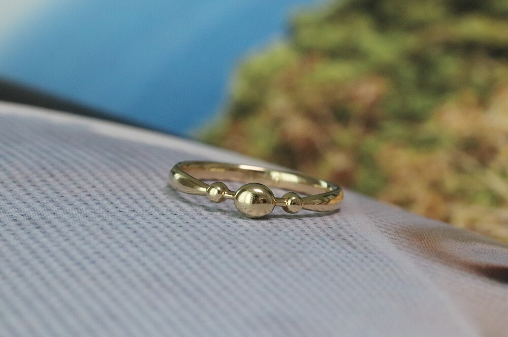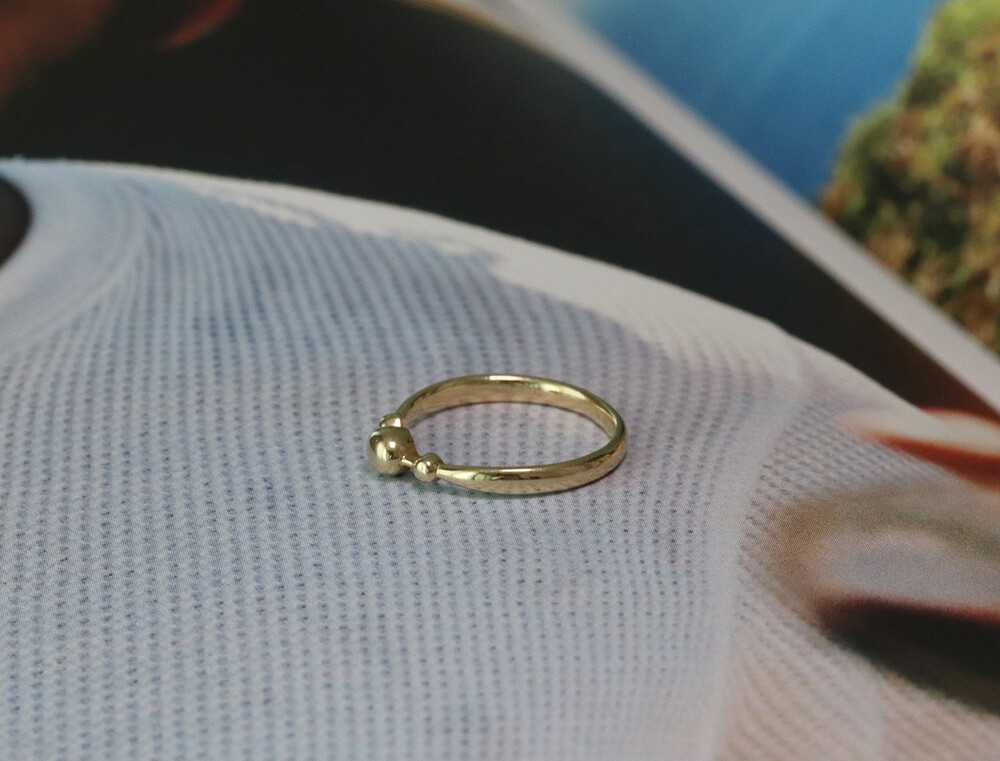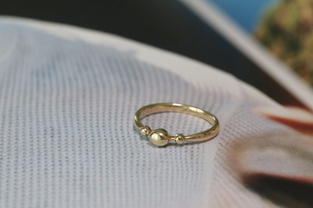 세 개의 타원형 볼 형태가 특징인 반지입니다.