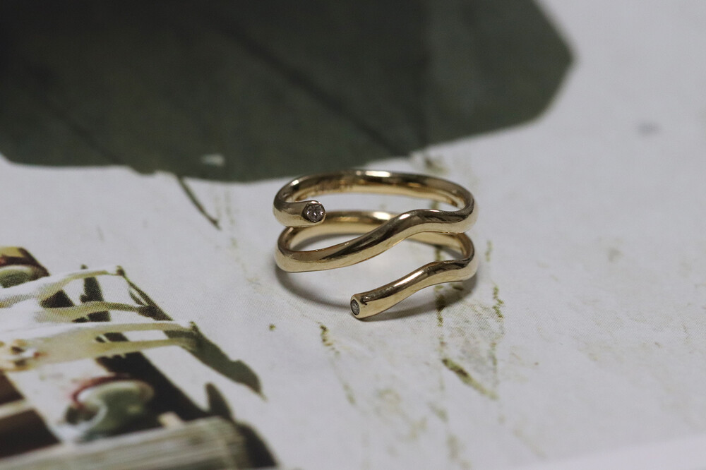 유연한 곡선라인과 라인에 맞춰 비스듬하게 세팅된 브라운다이아몬드가 은은하게 빛나는 디자인입니다.