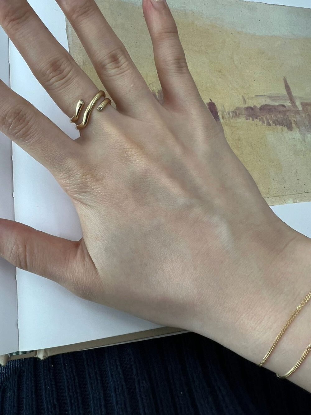 반지 사이즈는 일반적인 두께의 10호 보다는 폭이 다소 넓은 편이기 때문에 반사이즈에서 한 사이즈업 하시는 걸 추천드려요.