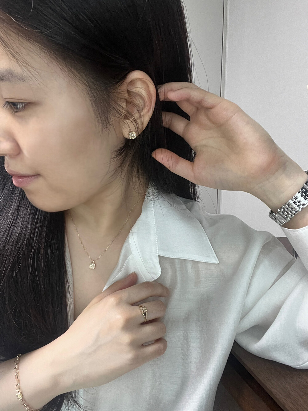 은은한 무드로 착용하시기에 좋고, 스터드 형식으로 데일리 주얼리로도 편하게 착용하실 수 있는 제품입니다.