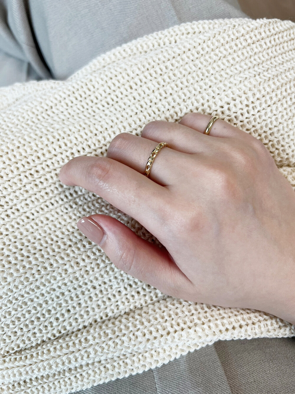 얇은 실반지가 아닌,약2.2mm정도의 폭으로 체인 디테일이 충분히 돋보이는 디자인입니다.