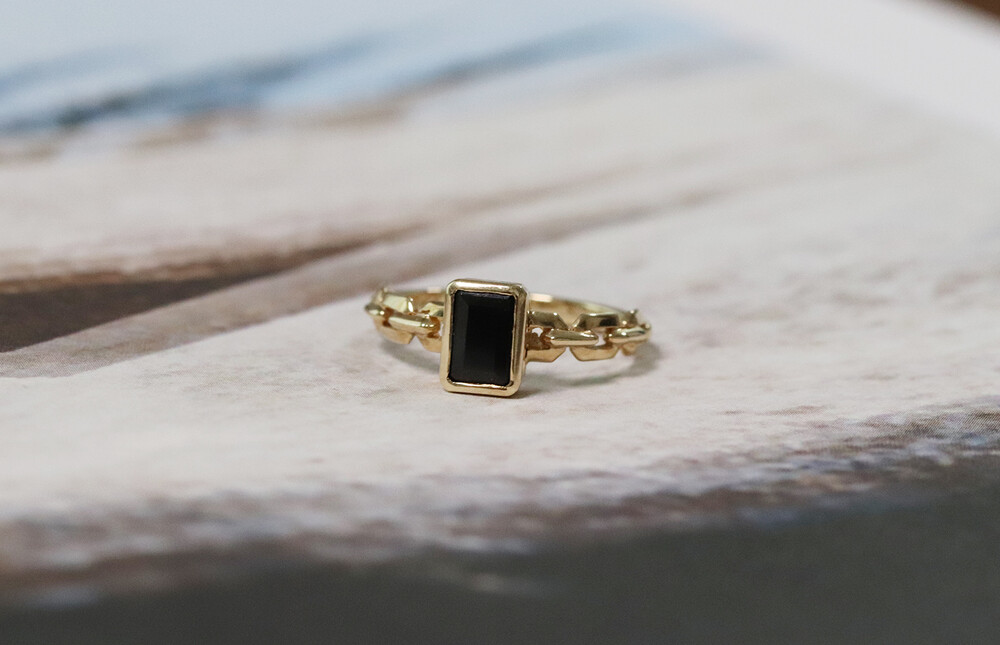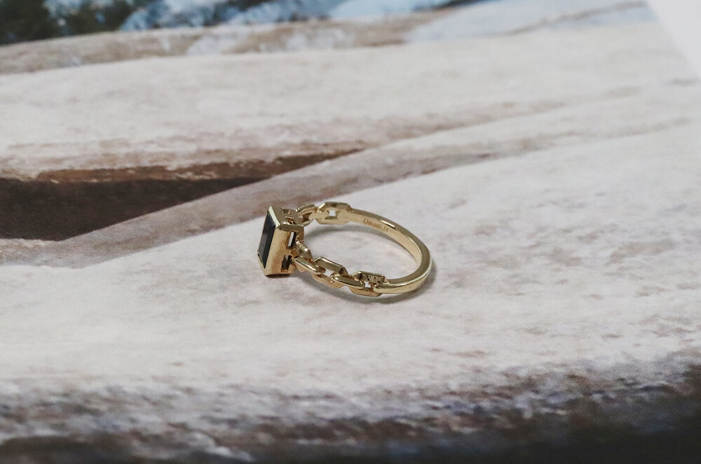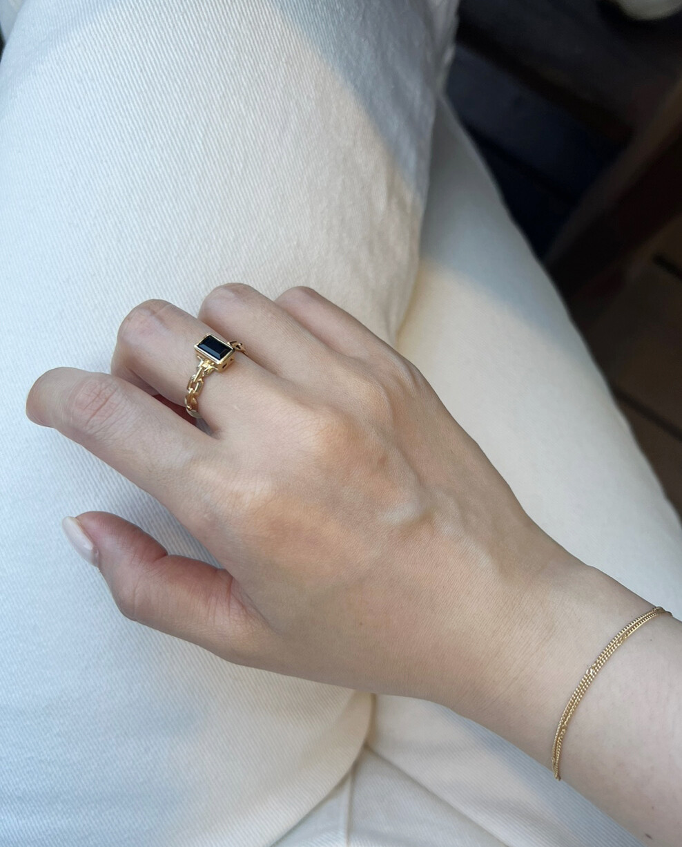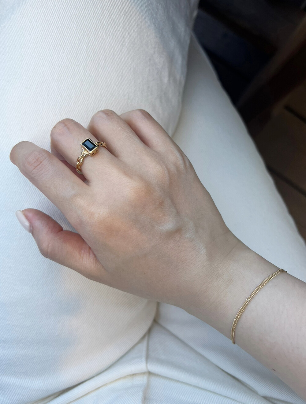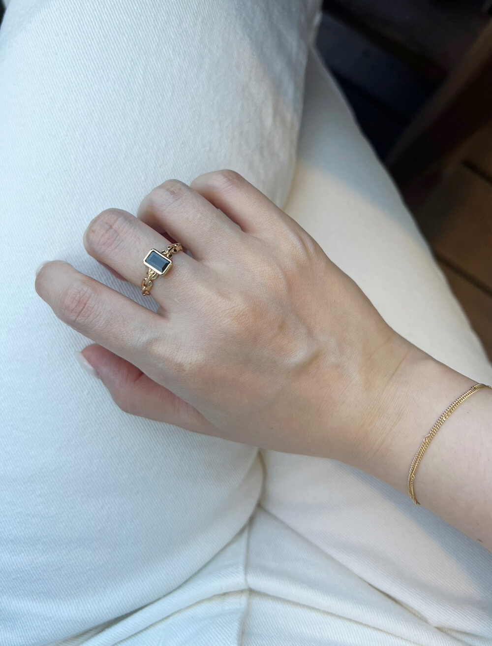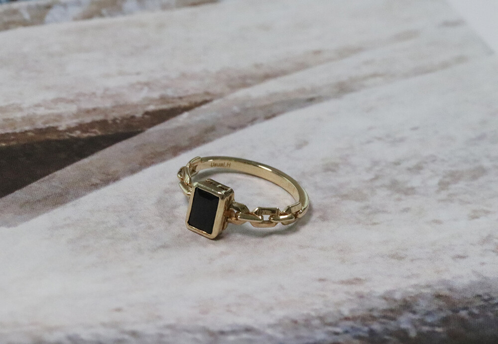 블랙스피넬과 체인의 조화가 시크하면서 세련된 반지입니다.