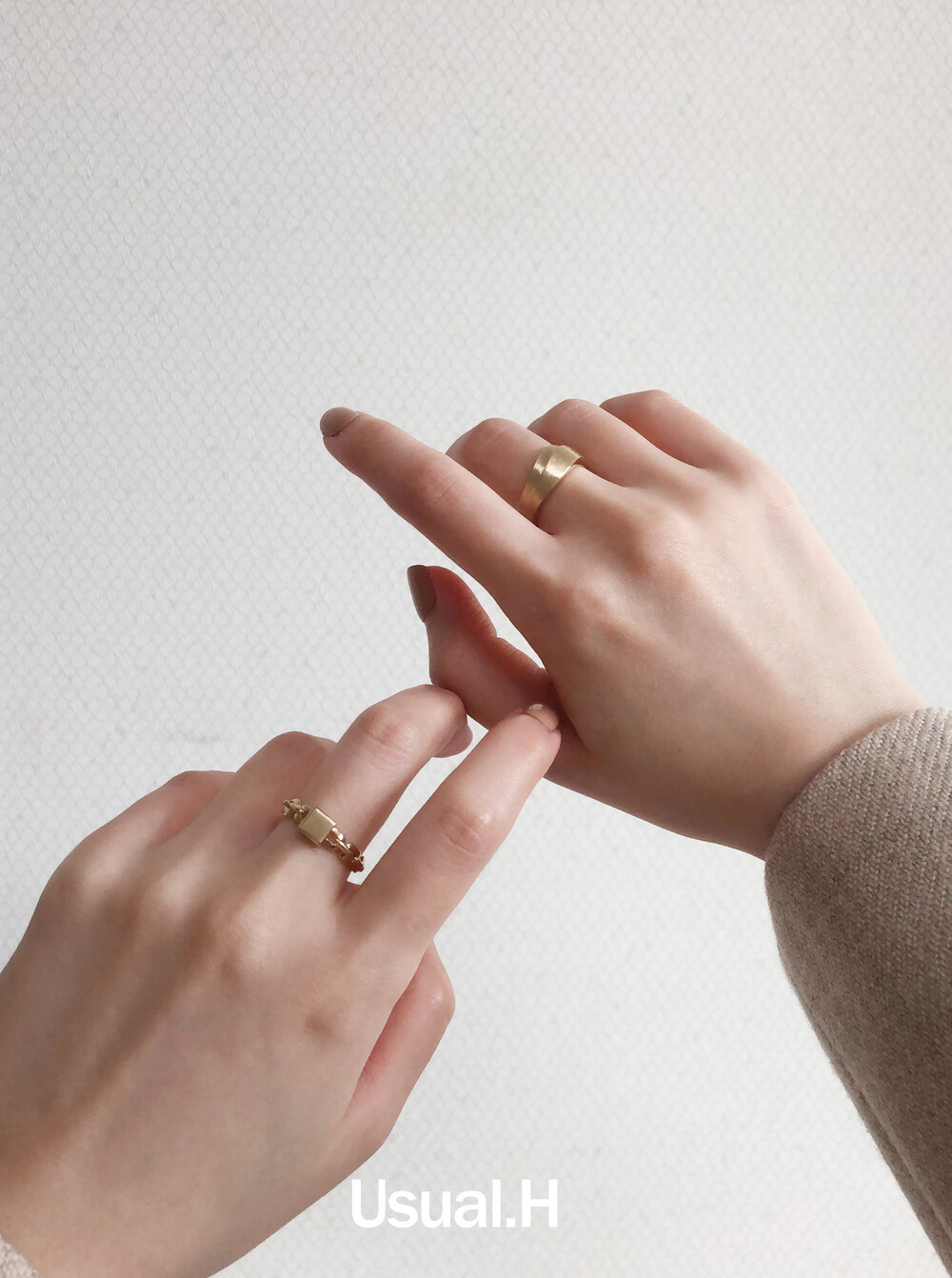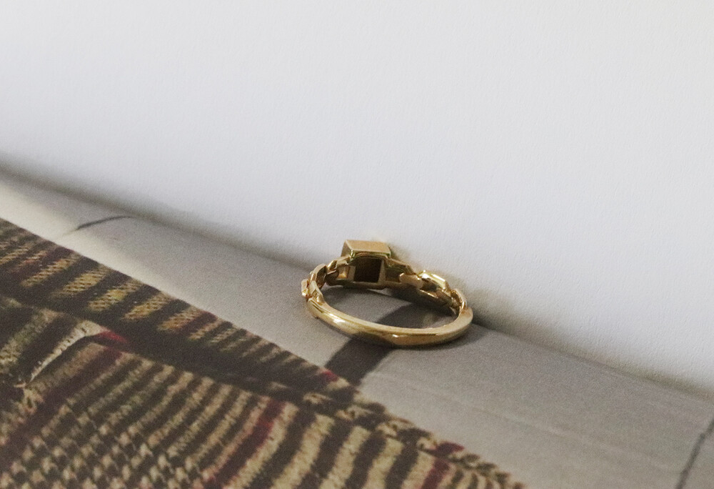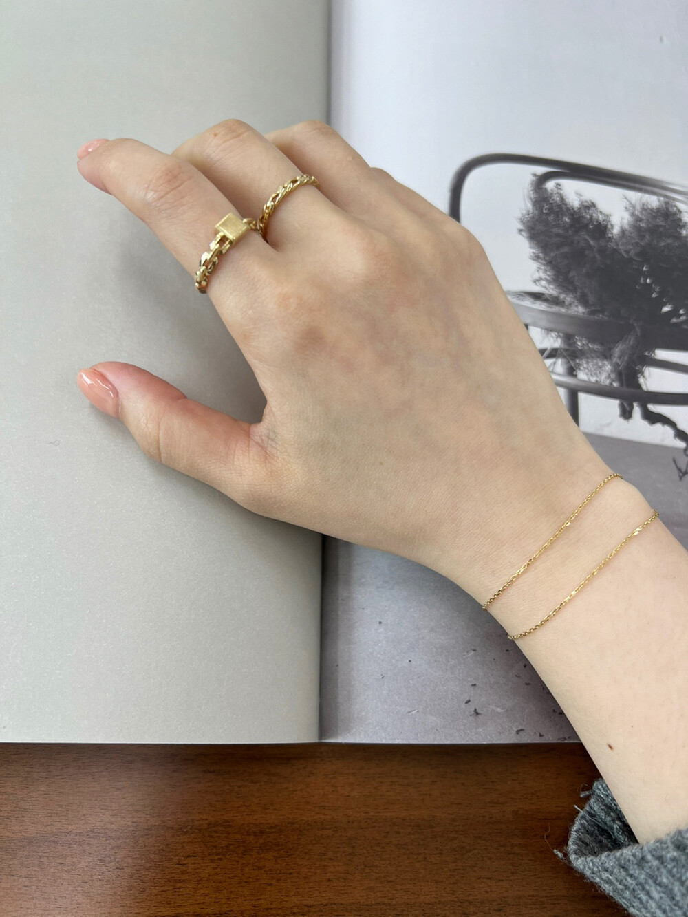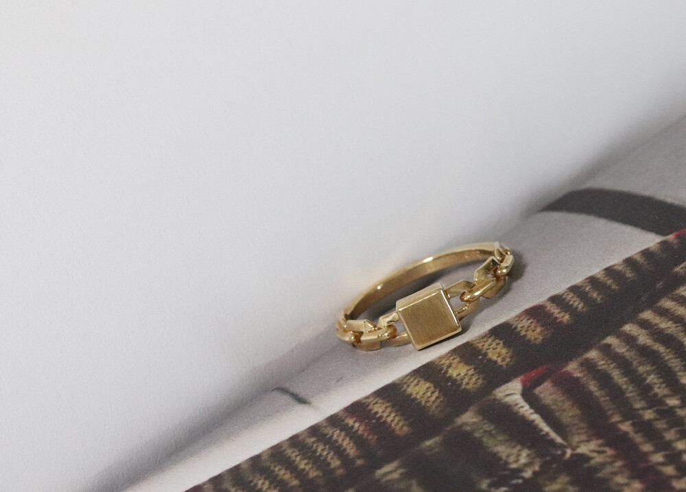 정사각형의 형태와 도톰한 체인형태의 조화가 특징인 반지입니다.