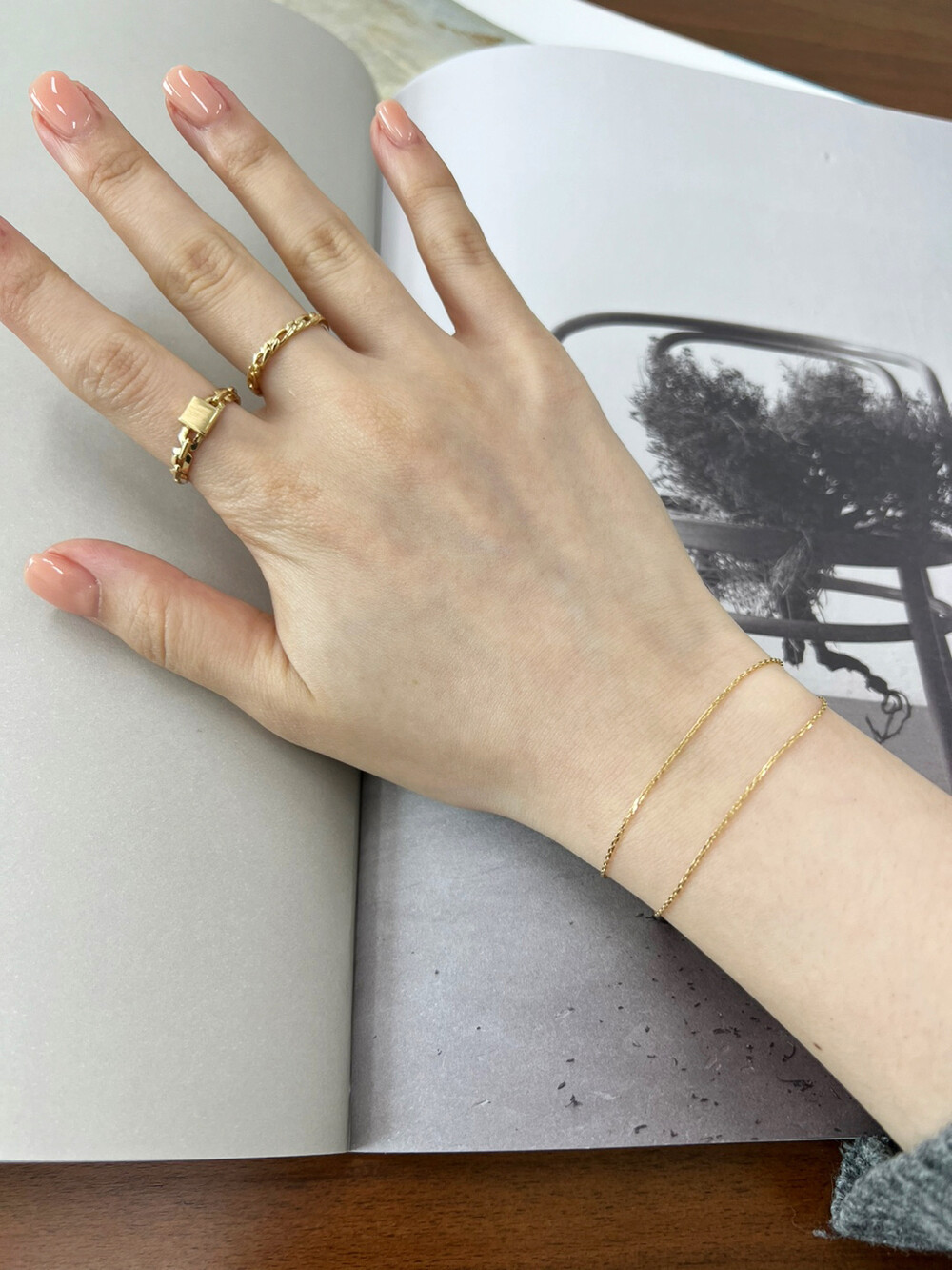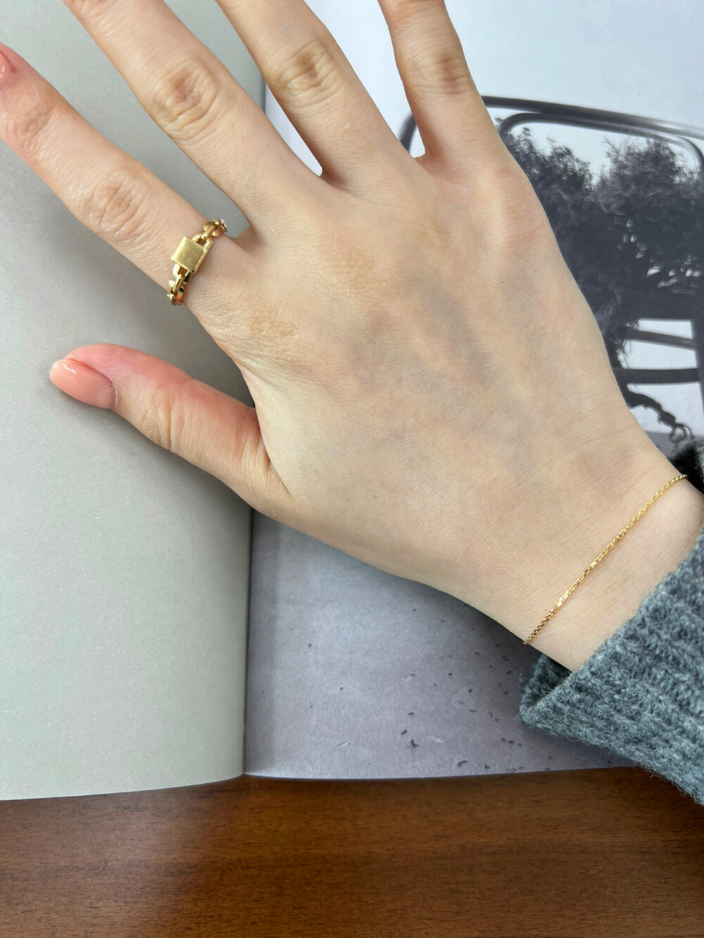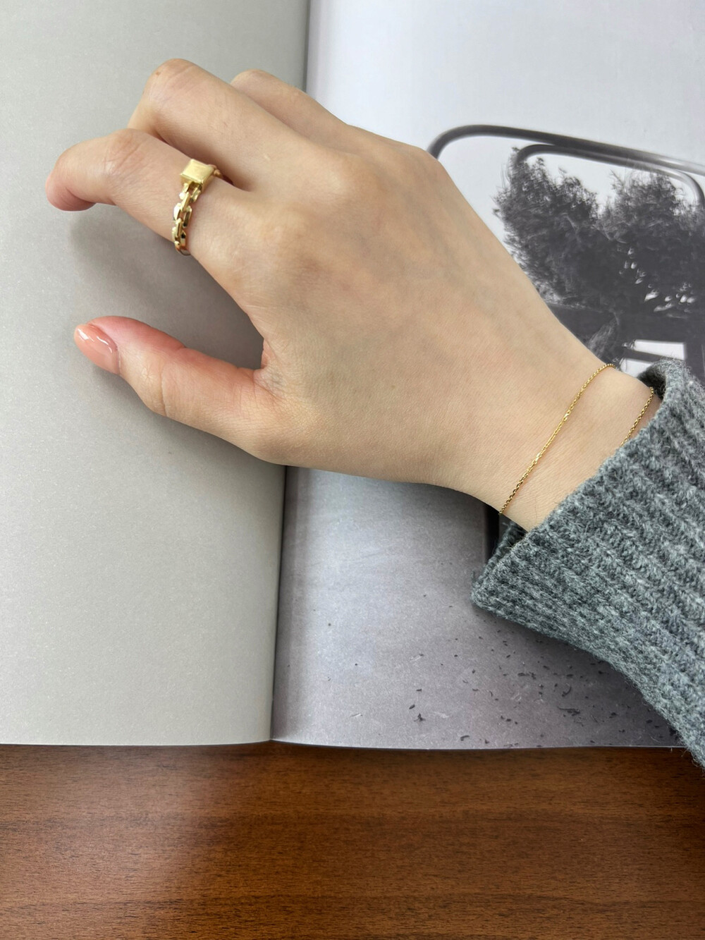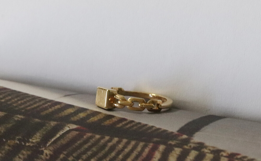 정사각형의 형태와 도톰한 체인형태의 조화가 특징인 반지입니다.