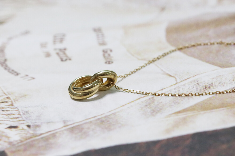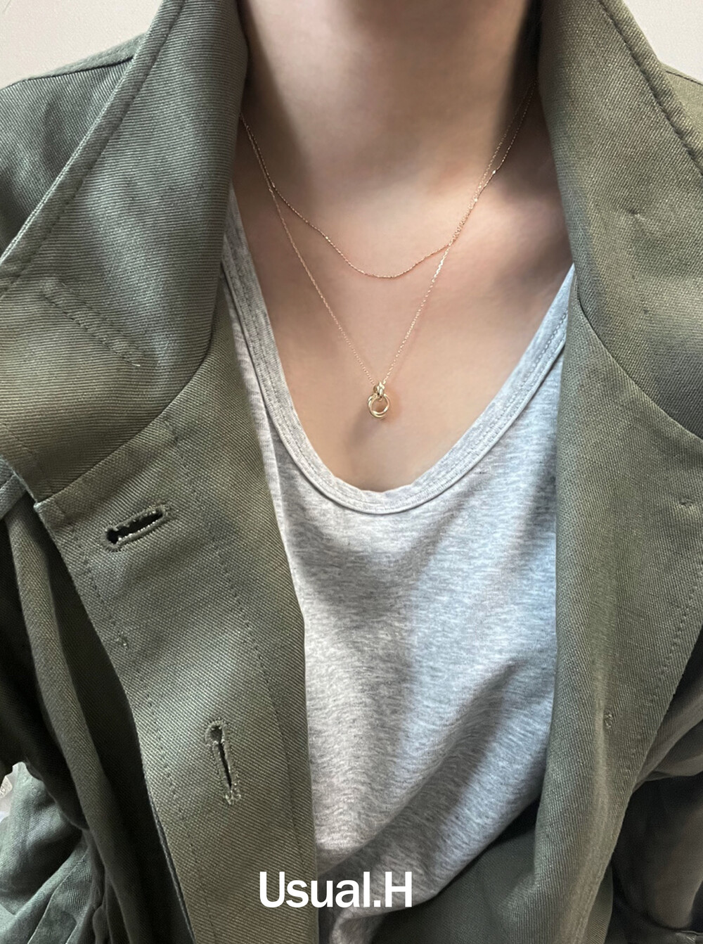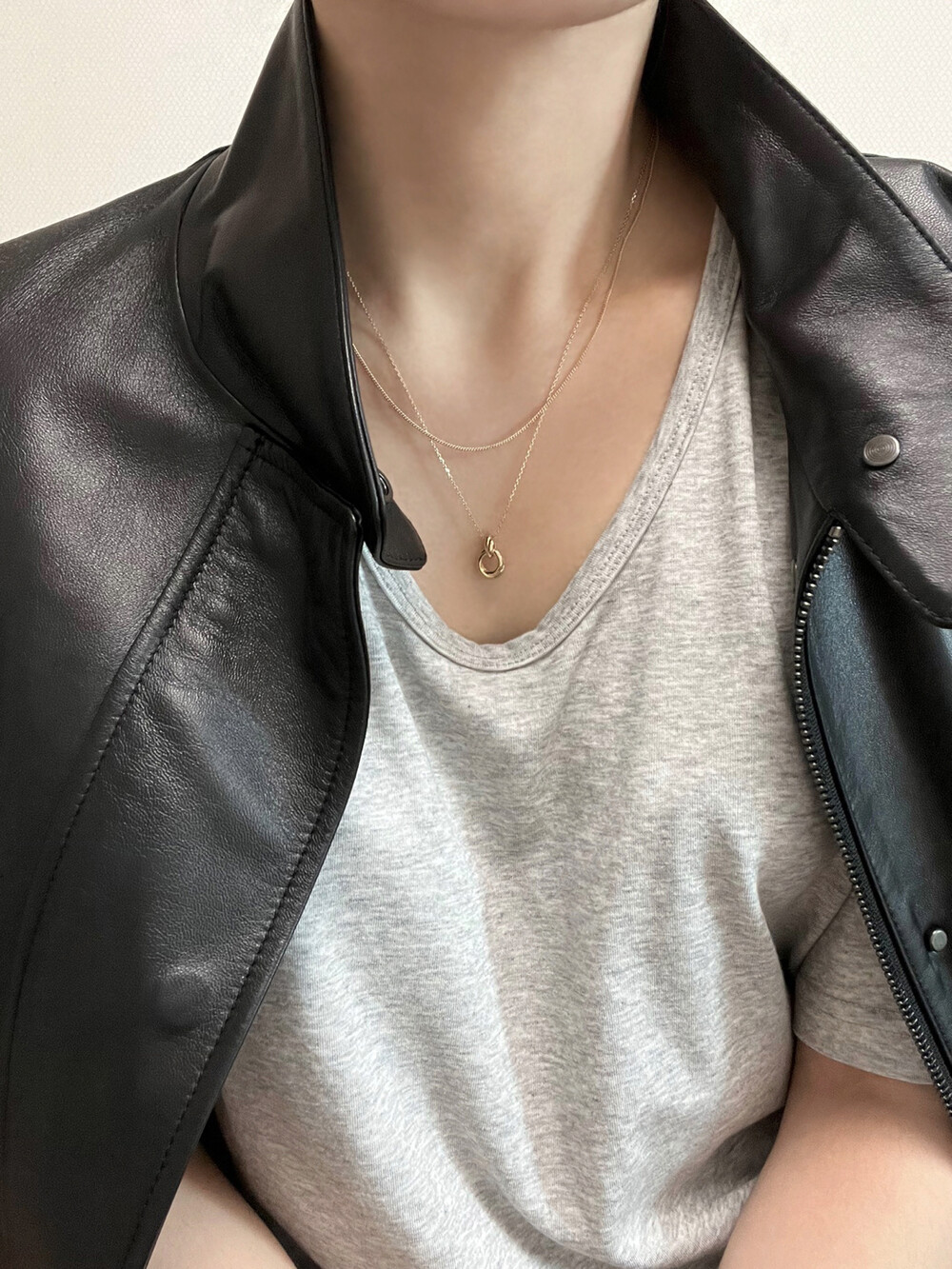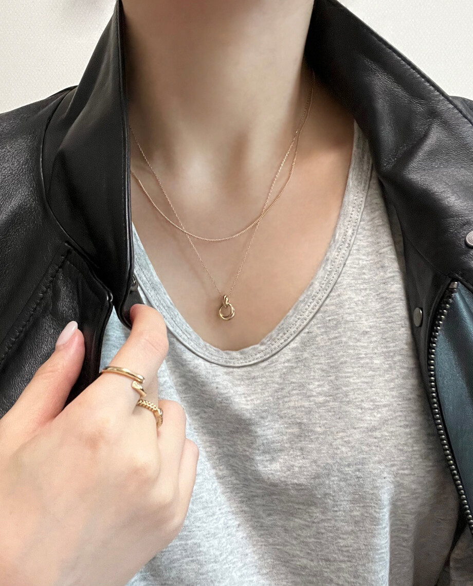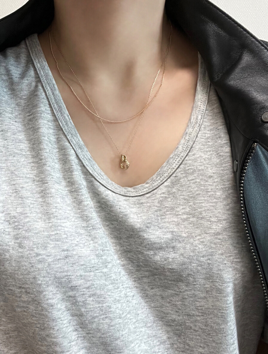 매듭 진 형태의 디테일을 가진 펜던트가 여성스러우면서 고급스러운 무드를 주는 목걸이입니다.
