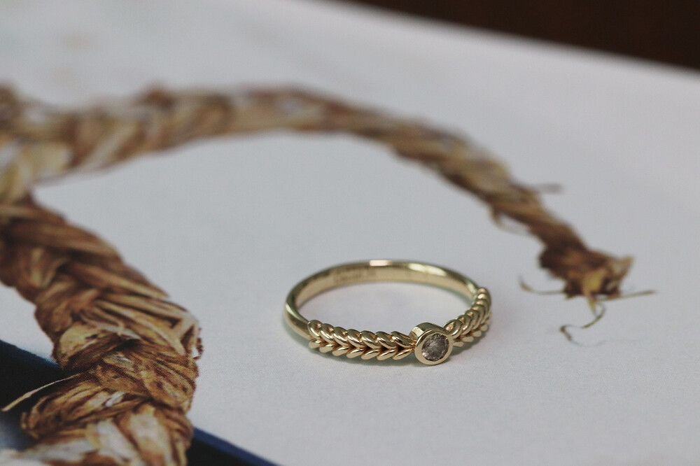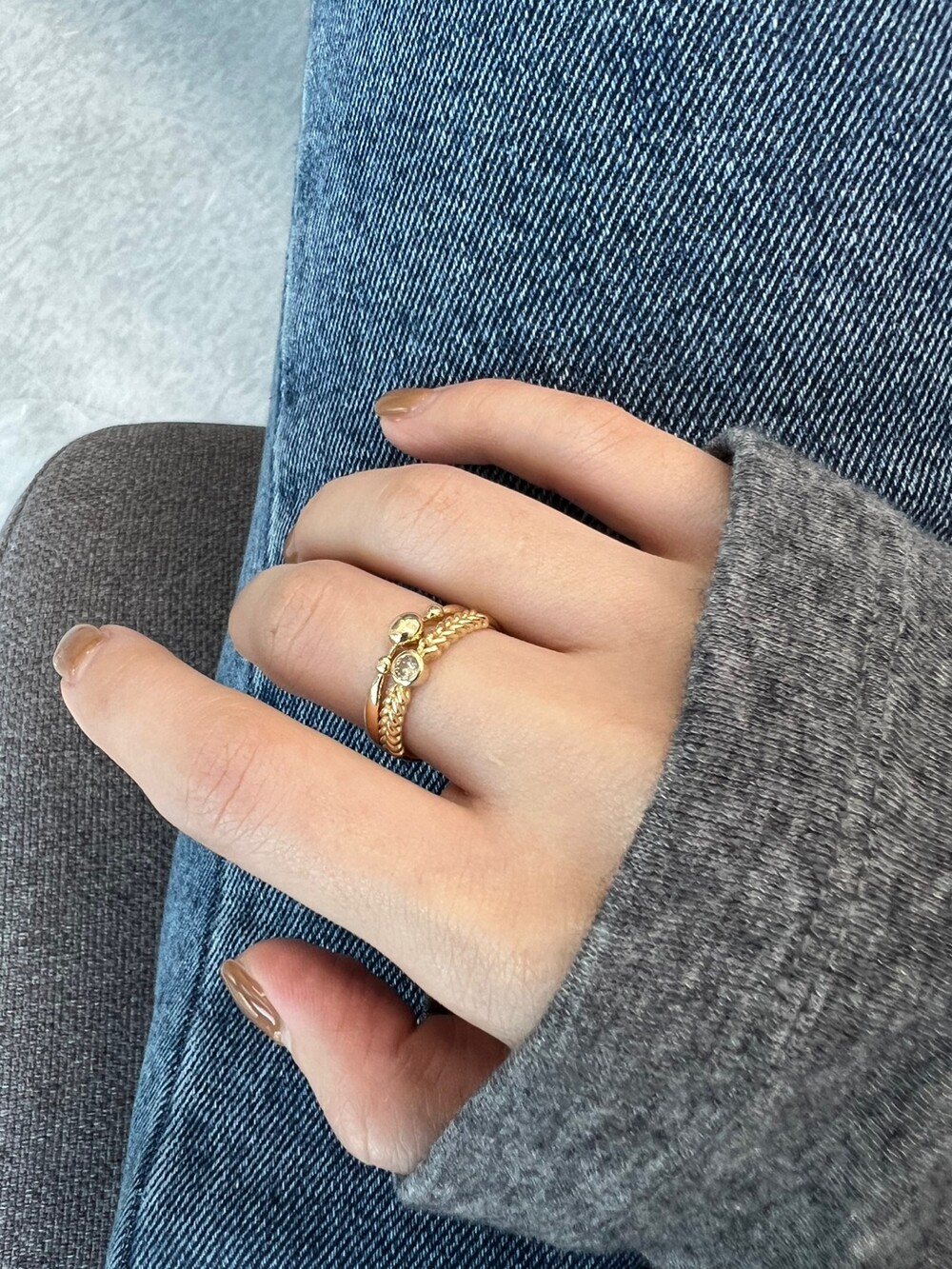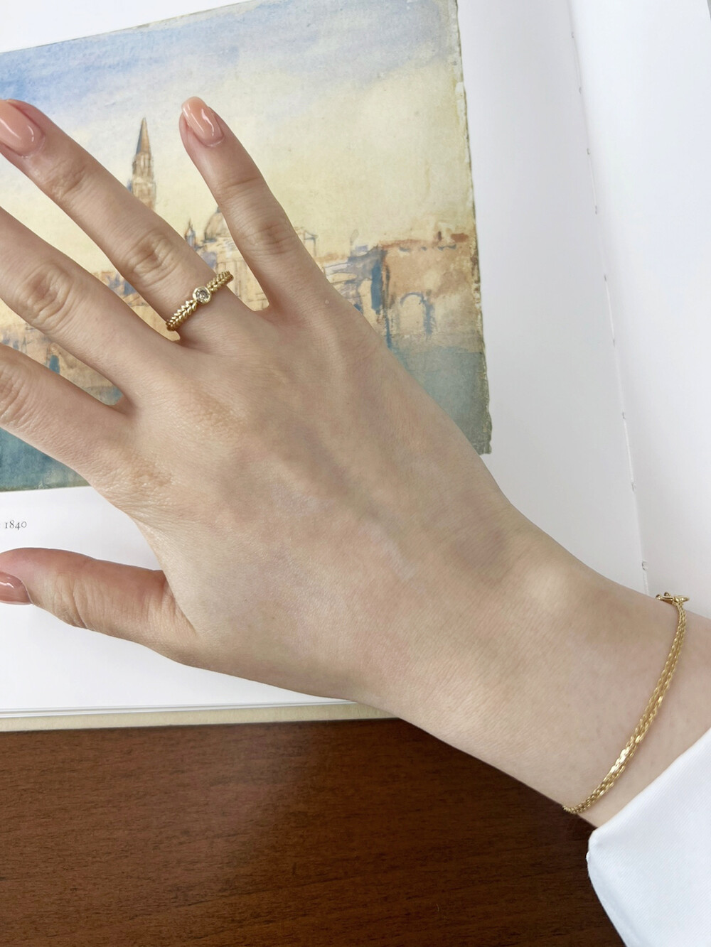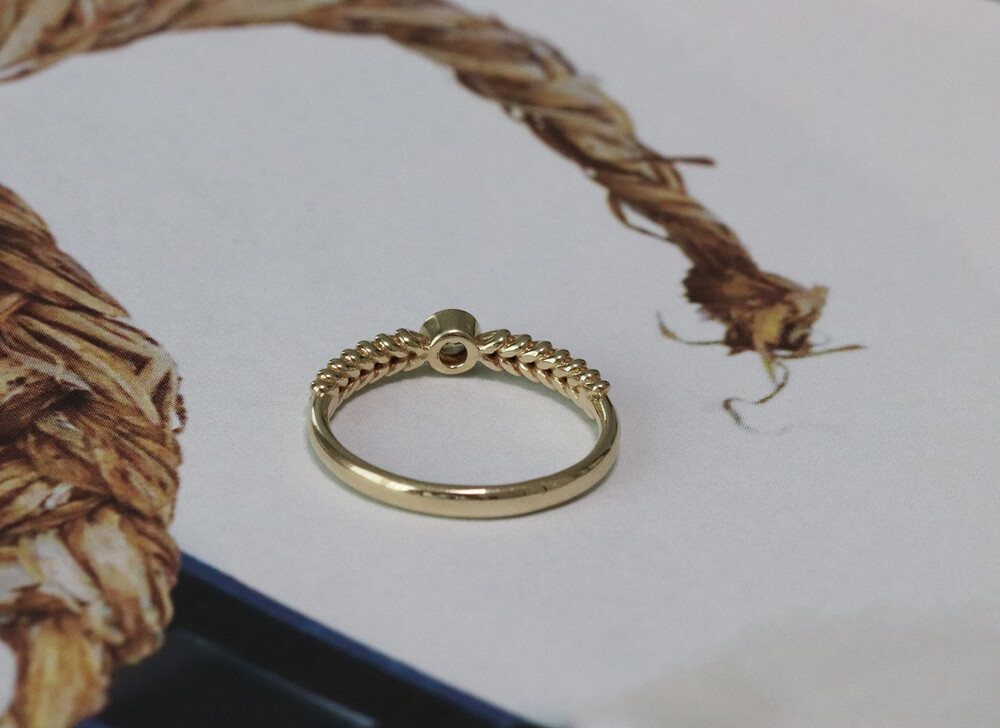 꼬임디테일과 1부 라이트브라운다이아몬드의 조화가 여성스러운 반지입니다.