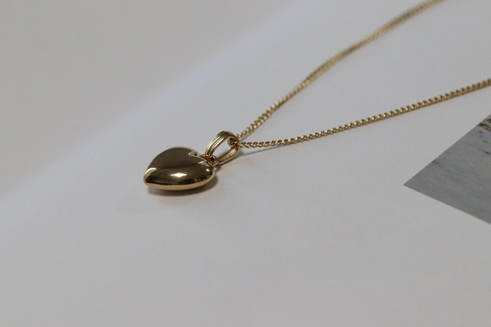 클래식 하트 펜던트와 아무르 체인 목걸이로 제작된 목걸이입니다.