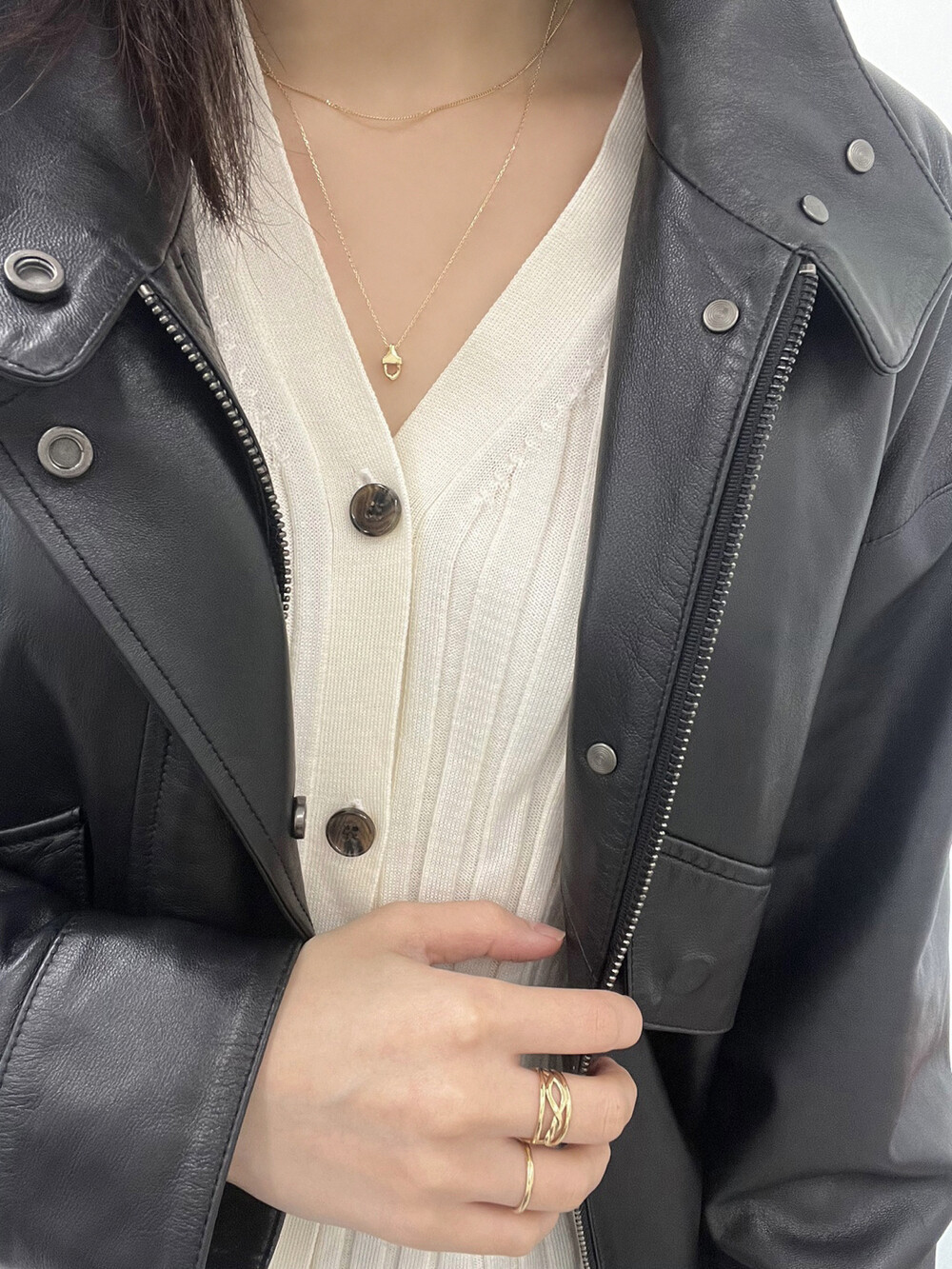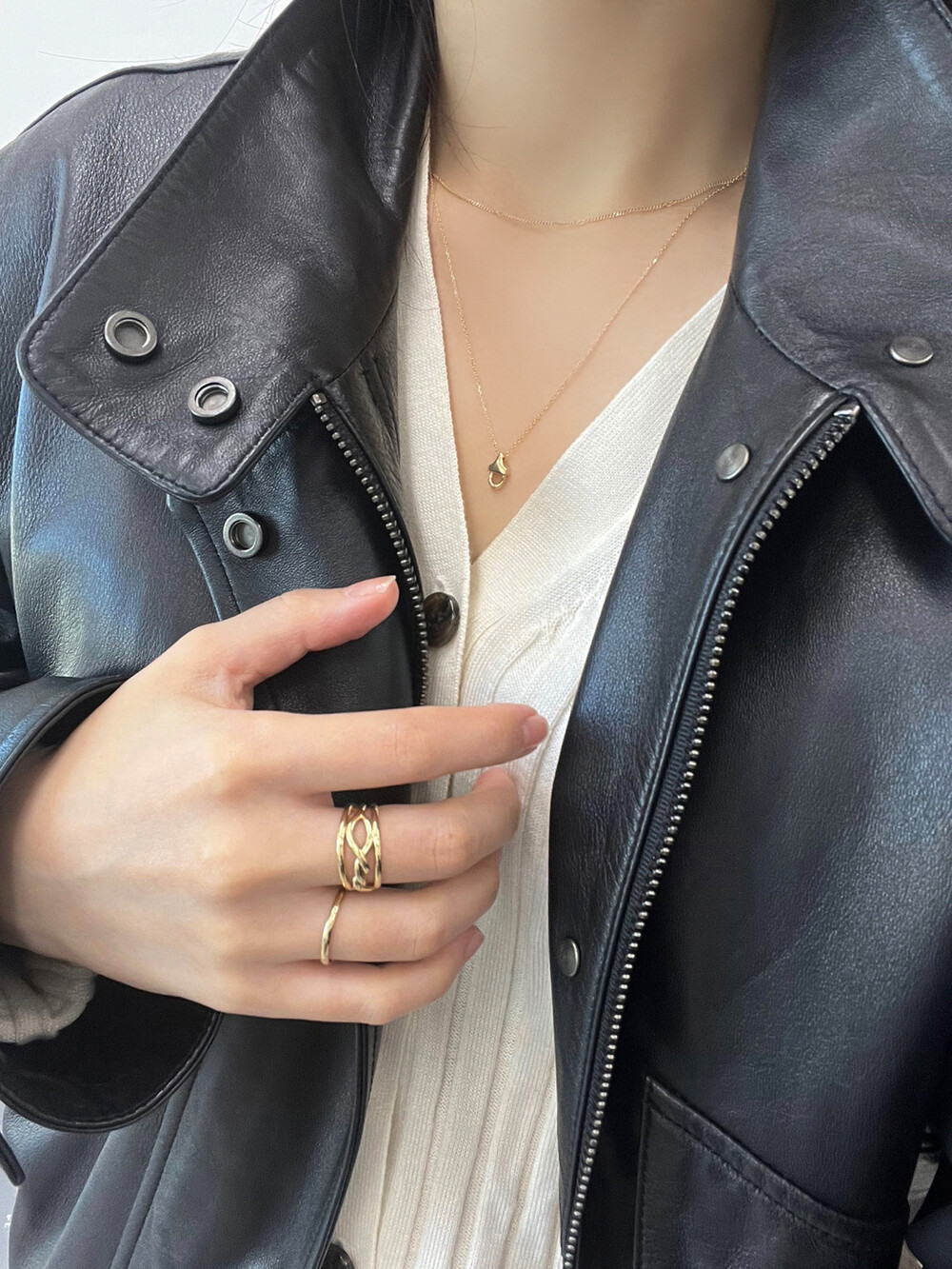 작은 펜던트 또는 얇은 체인 제품과 함께 레이어드 했을 때는 여성스러운 무드로도 연출하실 수 있어요.
