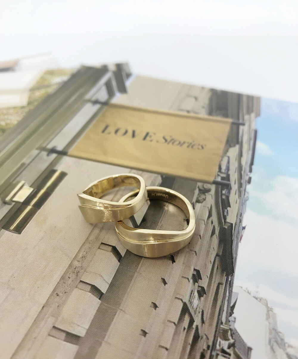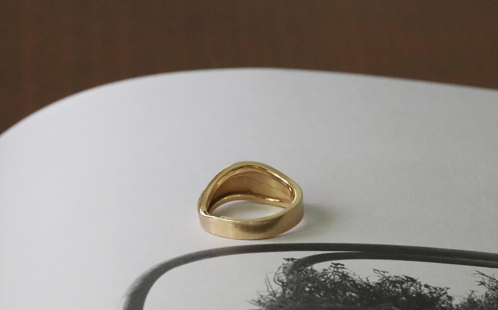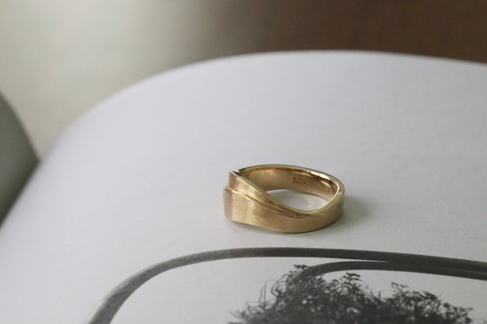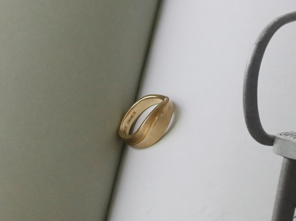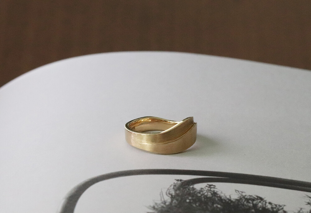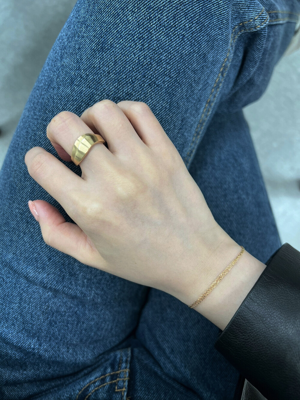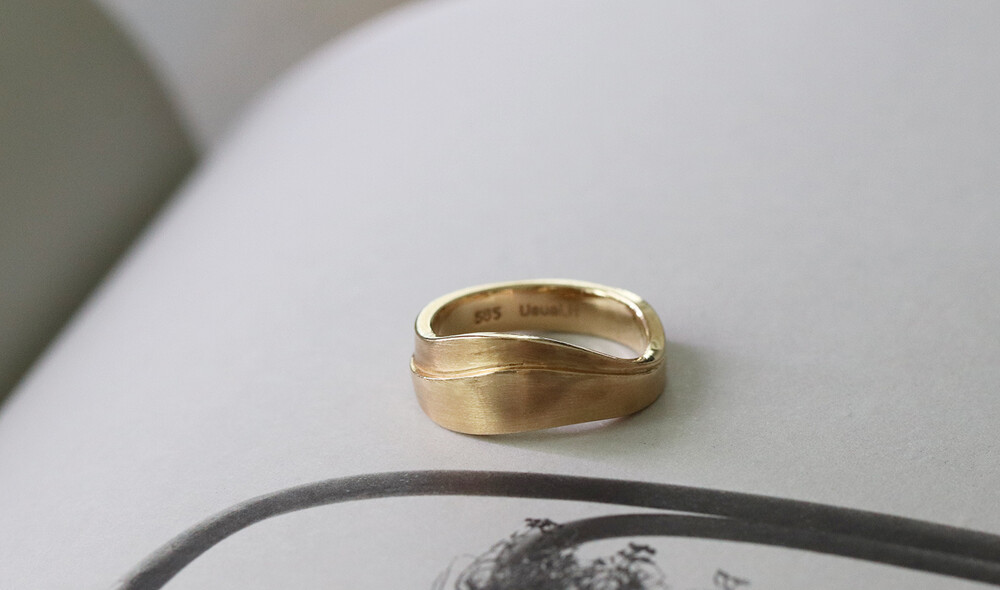 자연스러운 곡선라인이 겹쳐진 볼드한 스타일의 반지입니다.