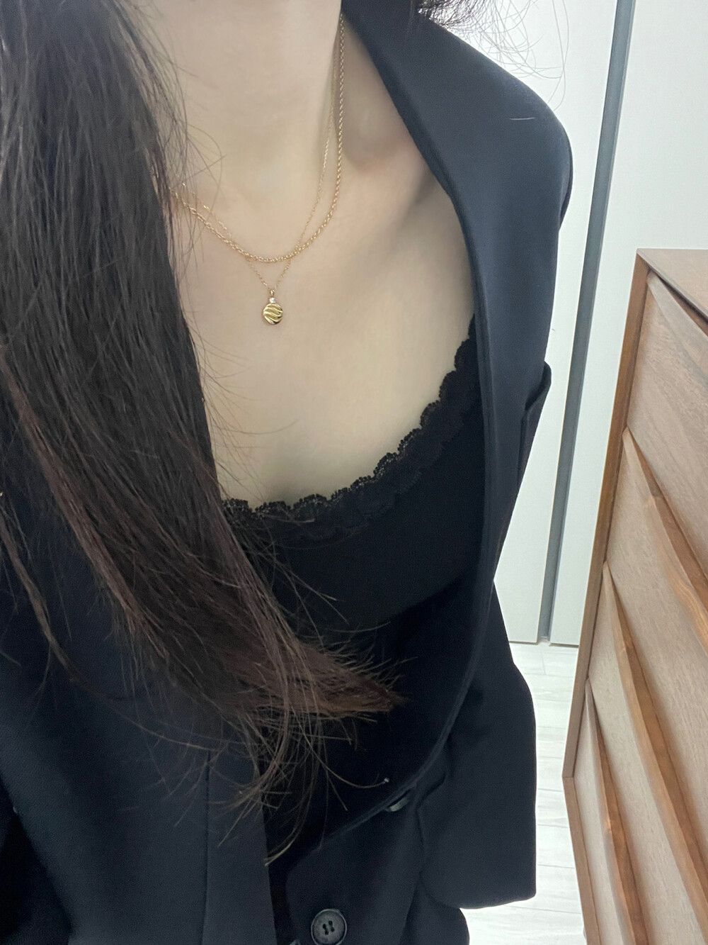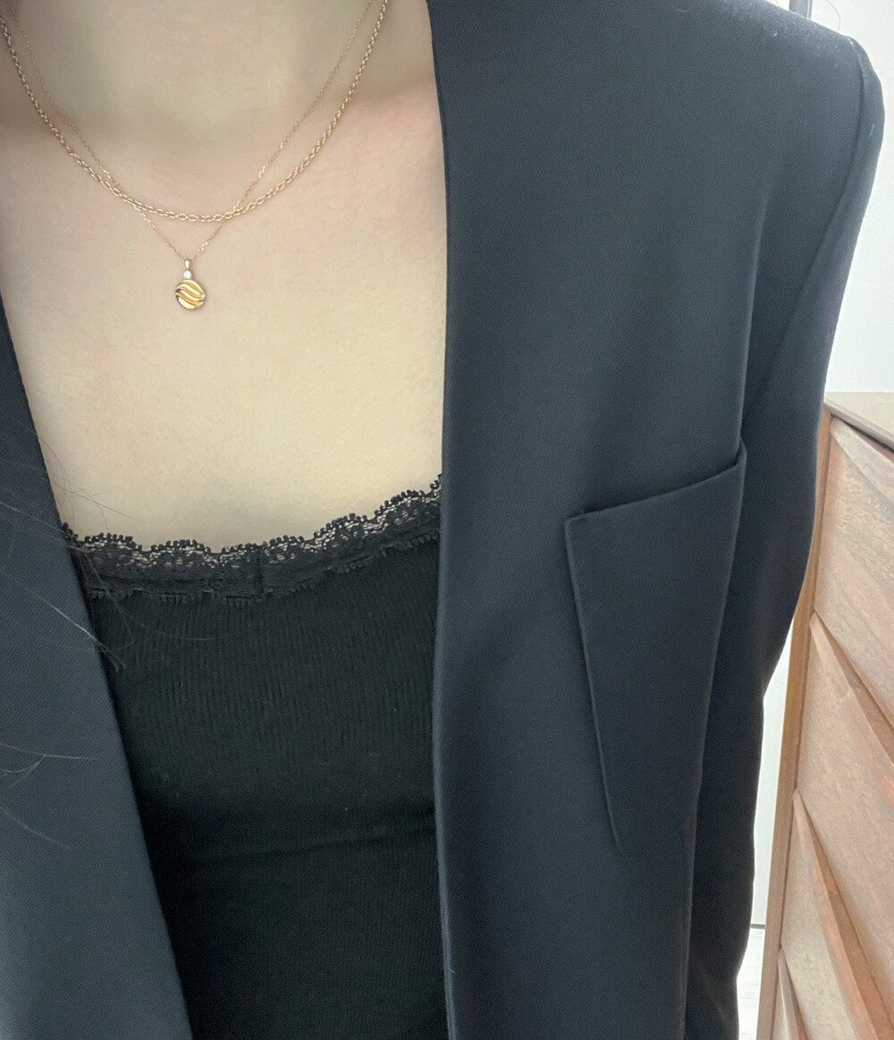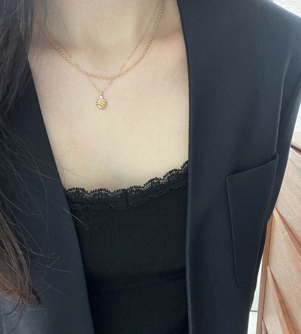 곡선라인과 볼륨감이 돋보이는 유니크한 디자인의 목걸이입니다.
