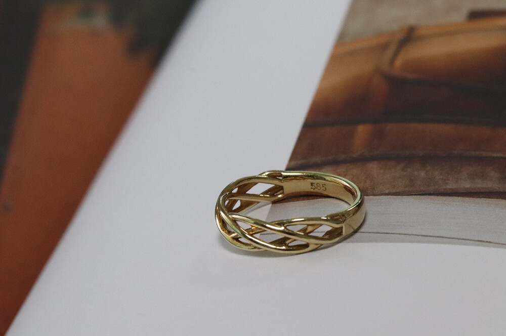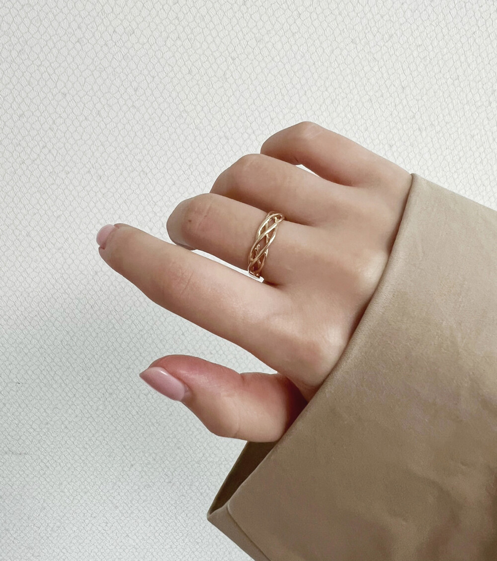 덩쿨처럼 라인들이 얽혀있는 디자인이 특징인 반지입니다.