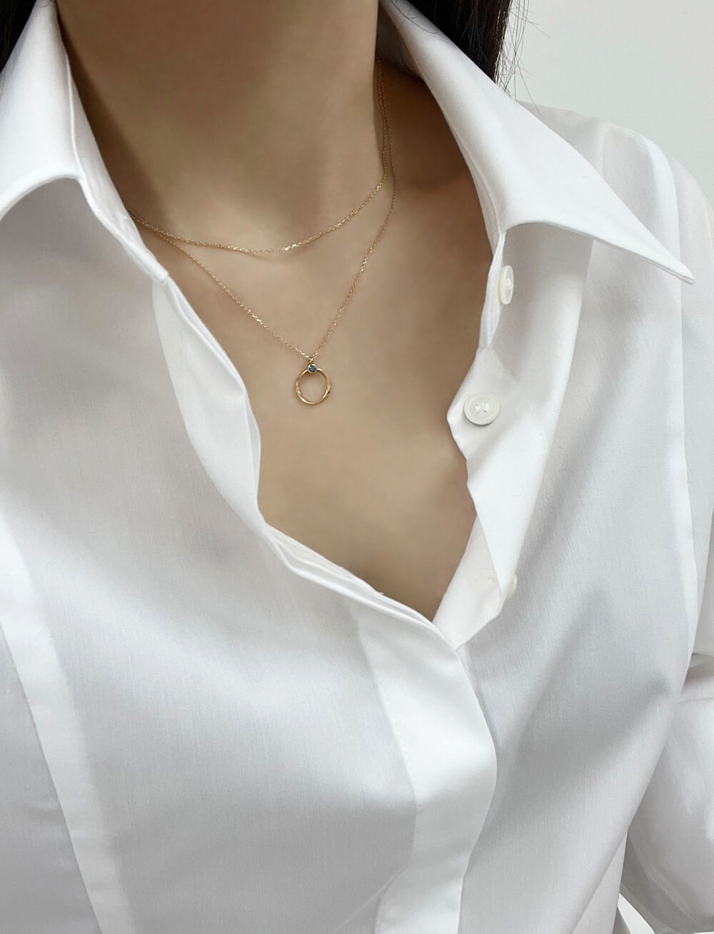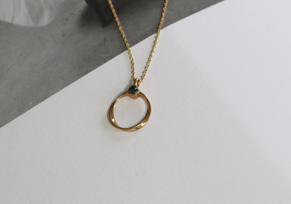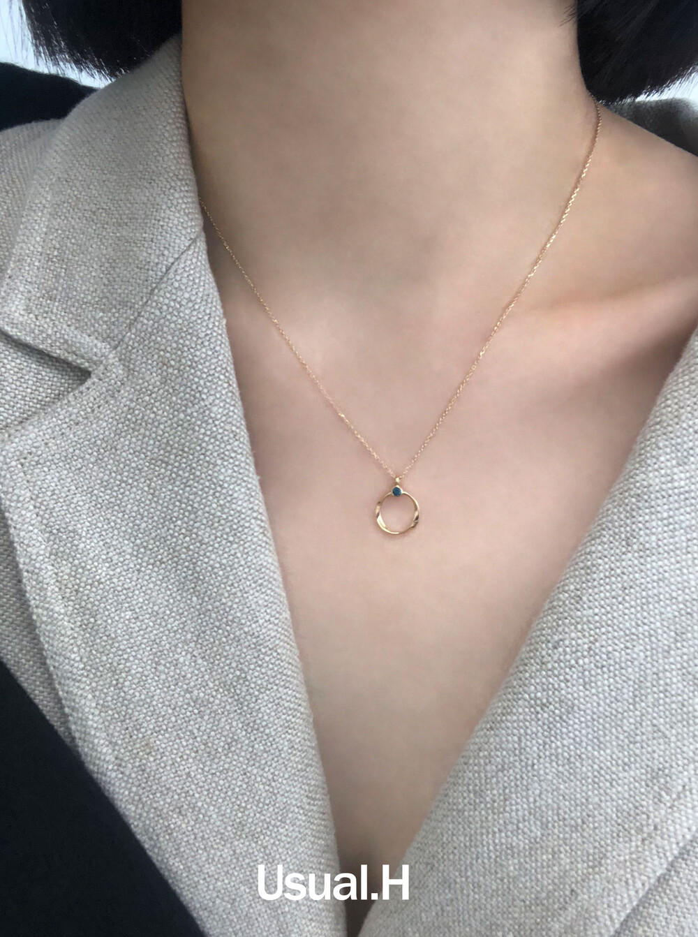 원에 꼬임을 준 형태와 베즐 세팅 된 블루다이아몬드가 포인트가 된 목걸이입니다.