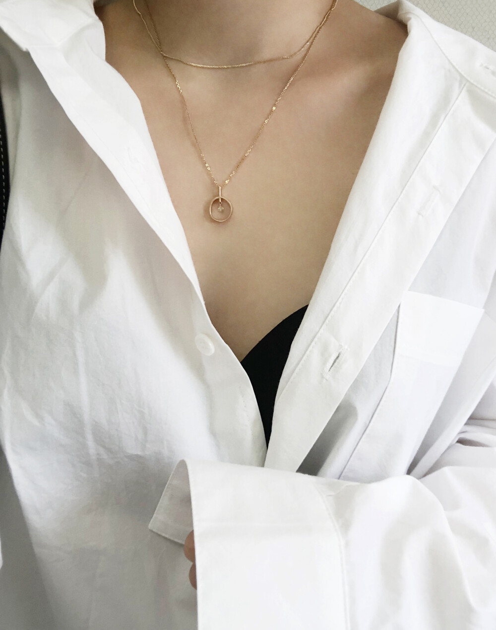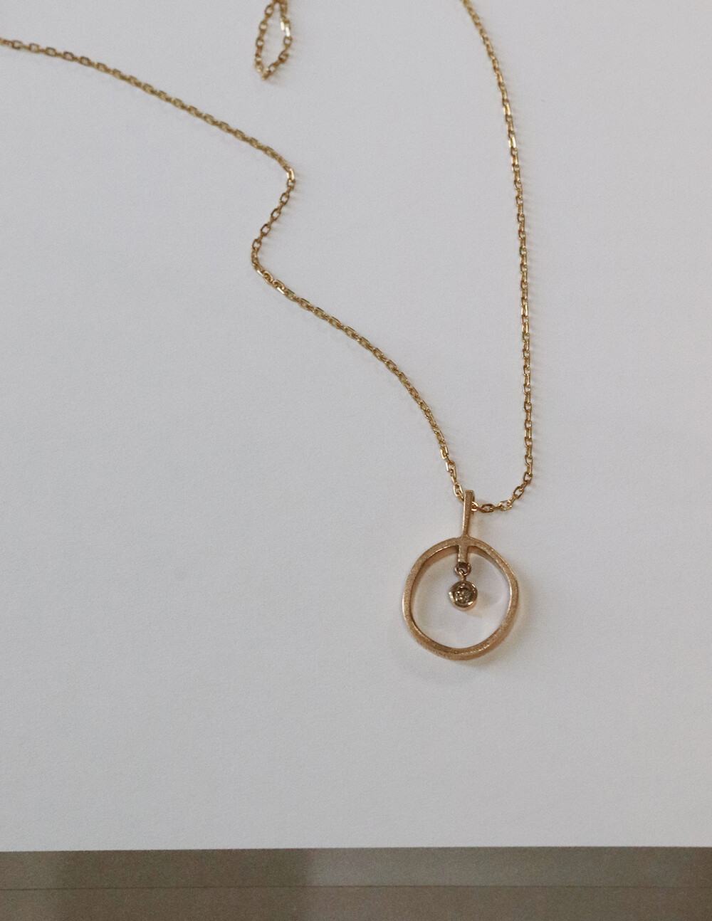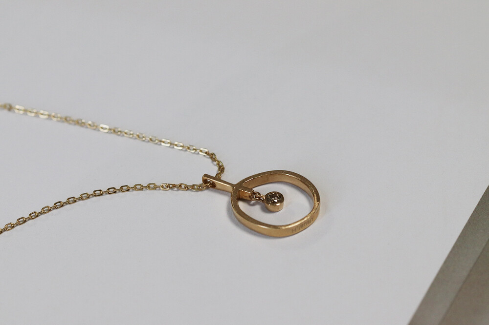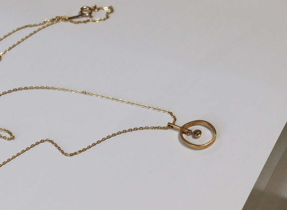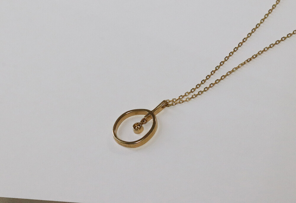 정형화되지 않은 원 형태 사이로 베즐 세팅된 브라운다이아몬드가 조화를 이룬 여성스러운 스타일의 목걸이입니다.