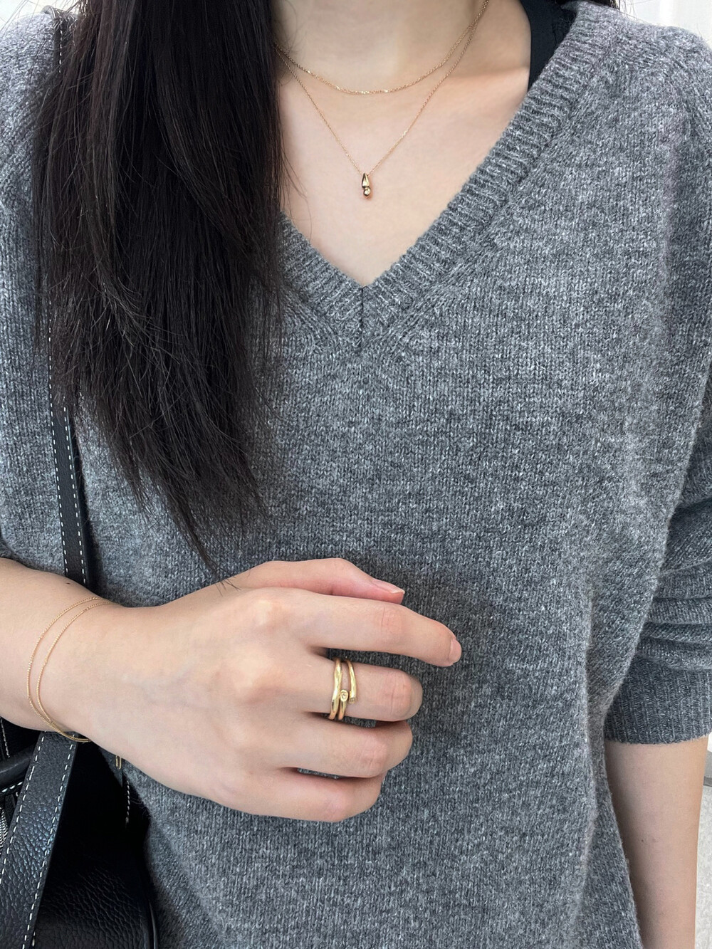 얇은 체인과 함께 레어어드 했을때 은은하면서 반짝이는 느낌이 가장 좋았어요.