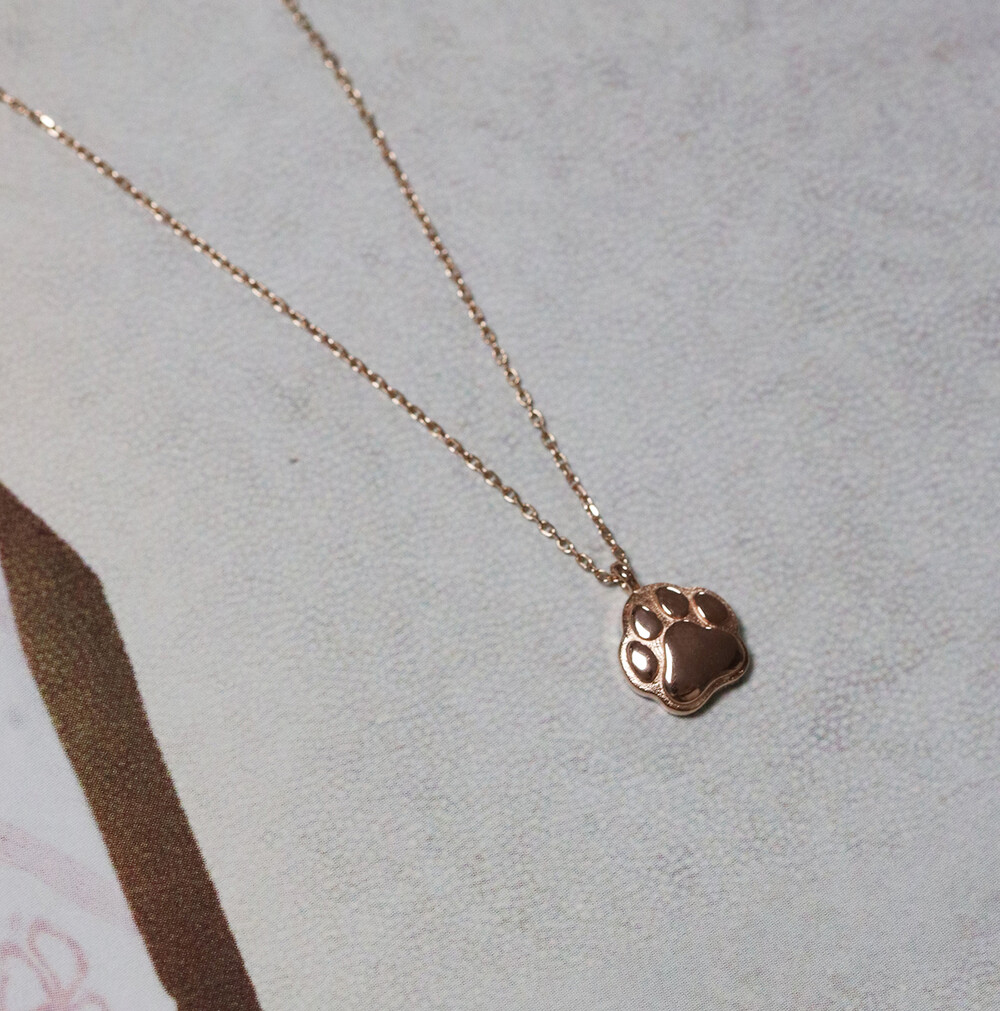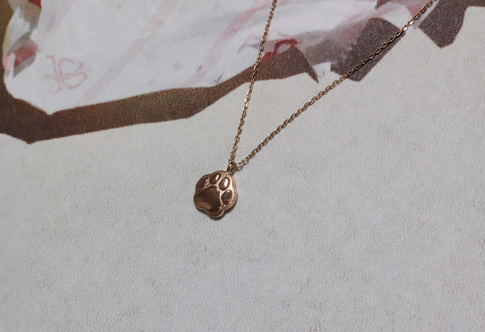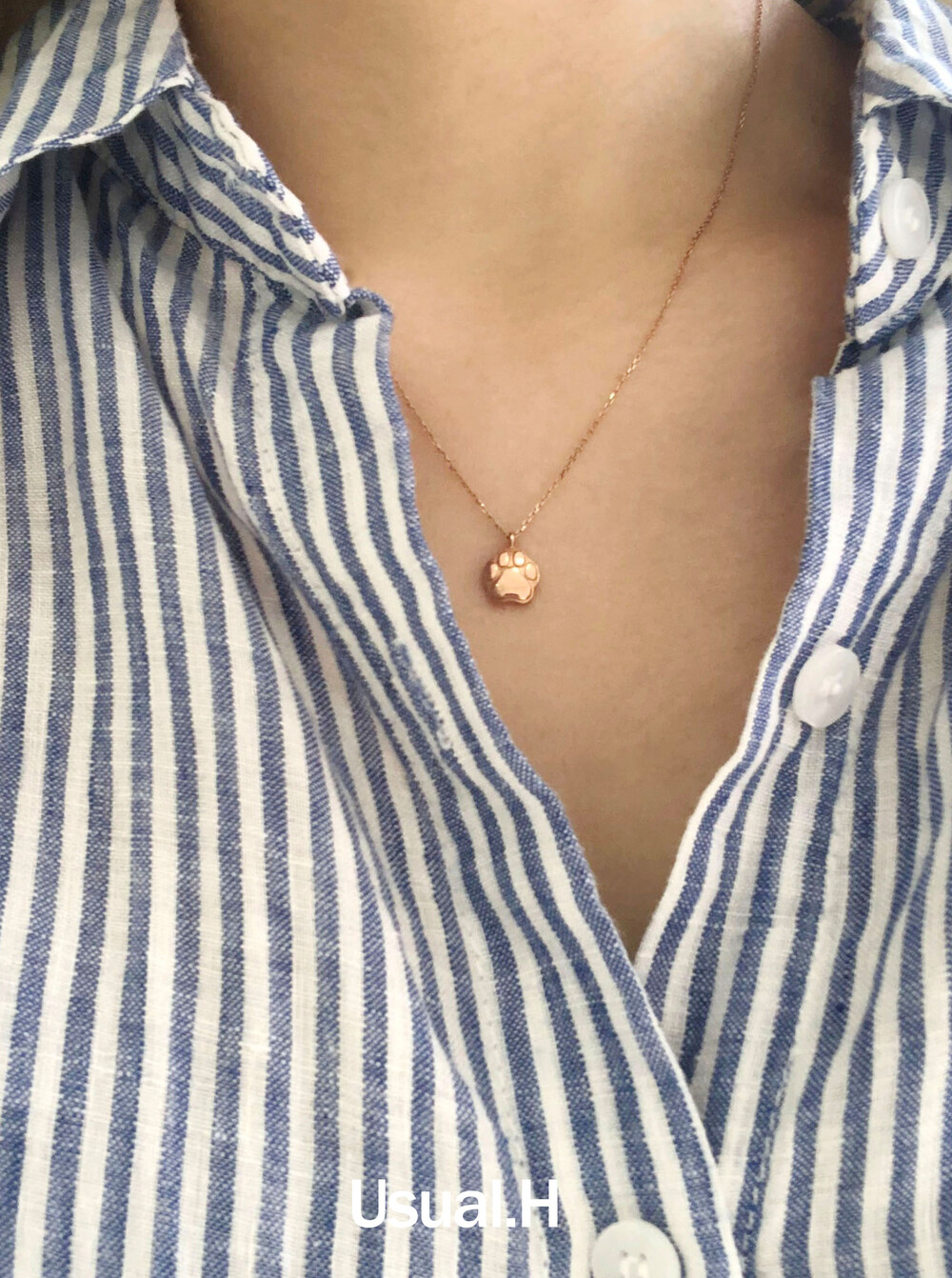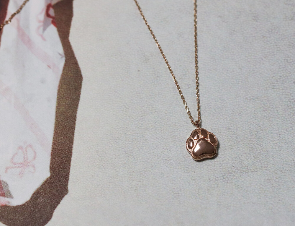 강아지 발바닥의 형태를 입체적으로 표현한 펜던트 목걸이입니다.
